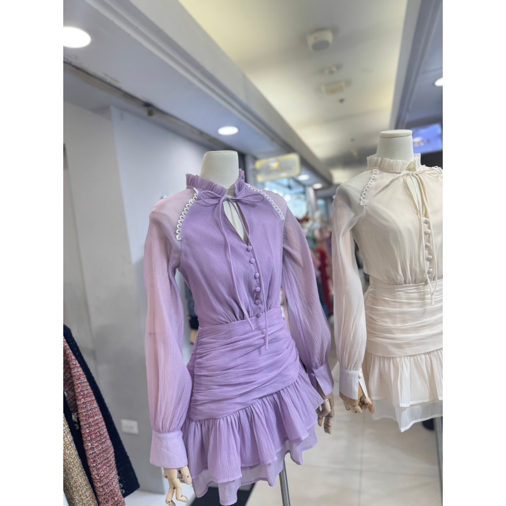 ❥ S-XL มินิเดรส สีม่วง สีครีม เดรสแขนยาว กระโปรงพลีทสั้น งานป้าย ADORA เดรสน่ารัก ชุดลุคคุณหนู