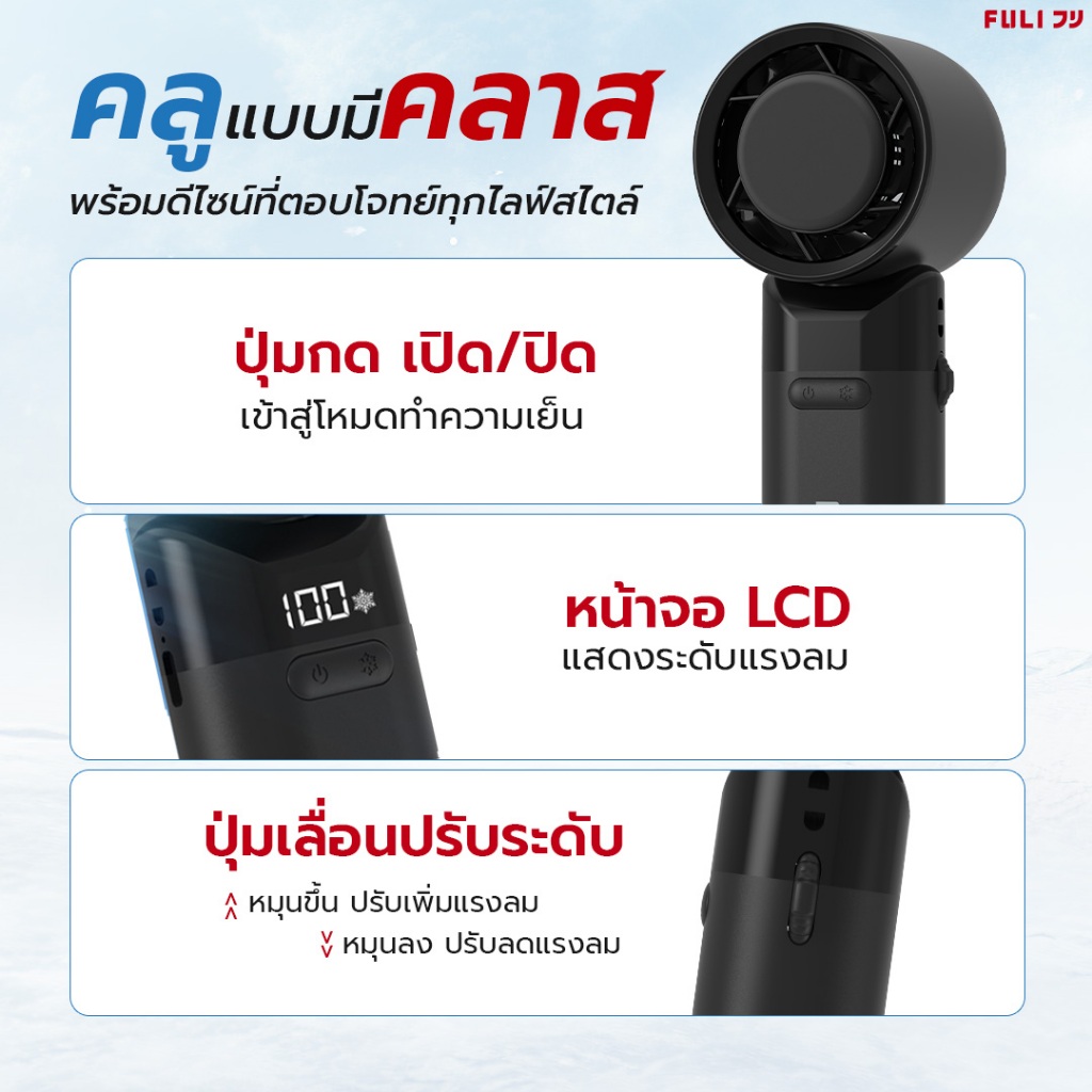 FULI พัดลมไอเย็นไฟฟ้าแบบพกพา | ICE Cooling Mini Fan - 10K RPM