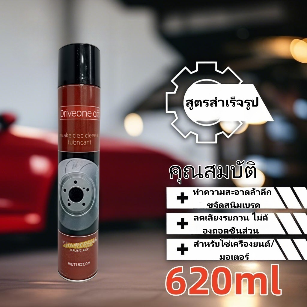 สเปรย์ทำความสะอาดเบรกและชิ้นส่วน / น้ำยาทำความสะอาดจานเบรก ขนาด 620 มิลลิลิตร สำหรับขจัดคราบน้ำมัน เขม่า และฝุ่นผงจากเบรก