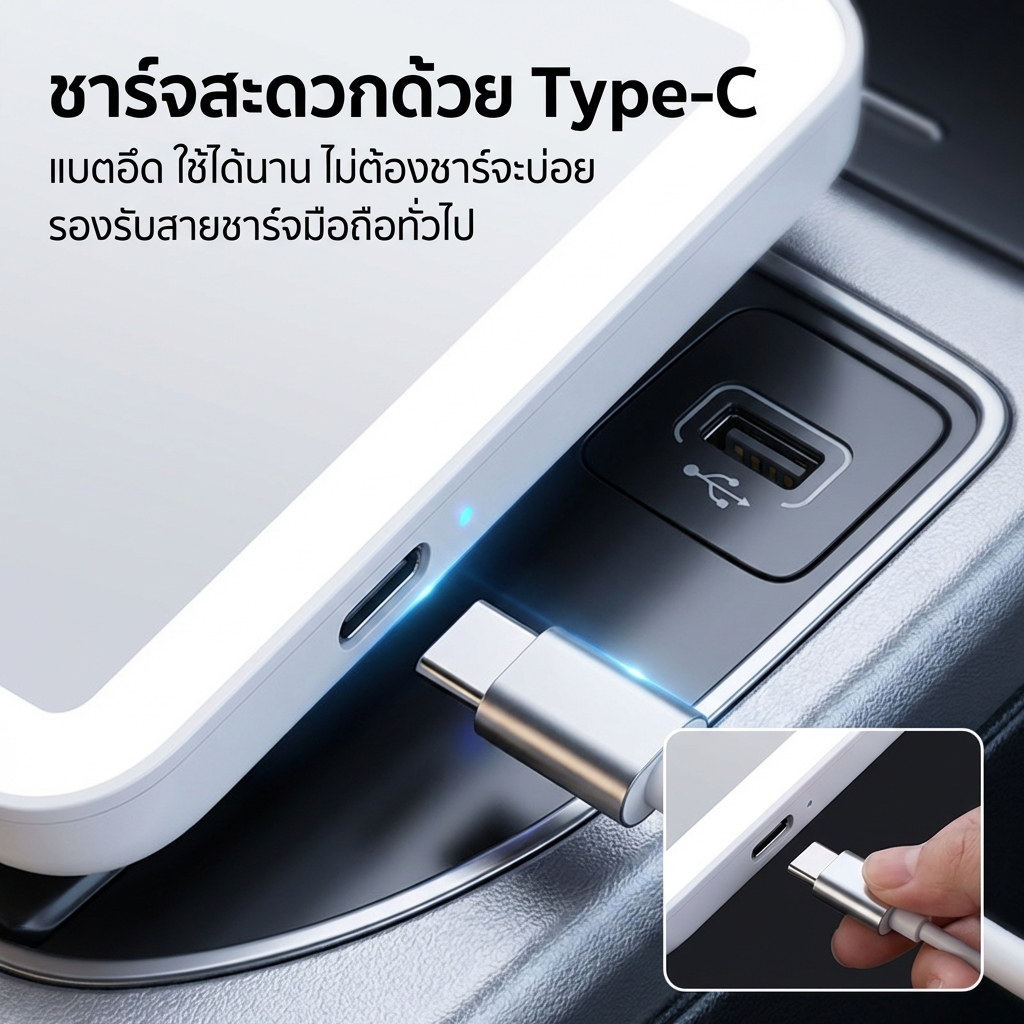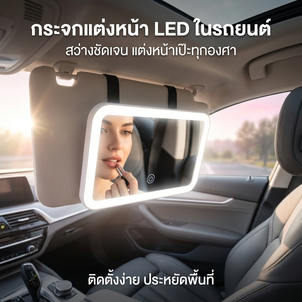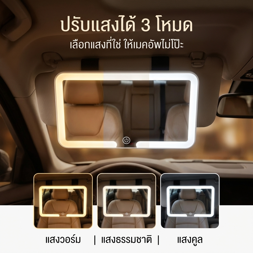 ที่บังแดดในรถยนต์แบบพกพา กระจกแต่งหน้า ไฟ LED แบบชาร์จไฟได้ กระจกเสริมความงาม