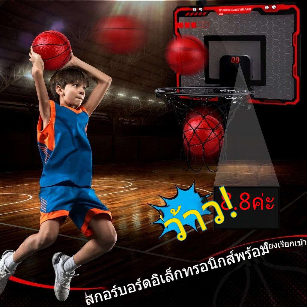 ห่วงบาสเก็ตบอลแบบแขวนขนาดเล็กพร้อมตัวนับคะแนน ห่วงบาสเก็ตบอลสำหรับเด็ก กระดานหลังกันกระแทกพร้อมลูกบอลและที่สูบลม