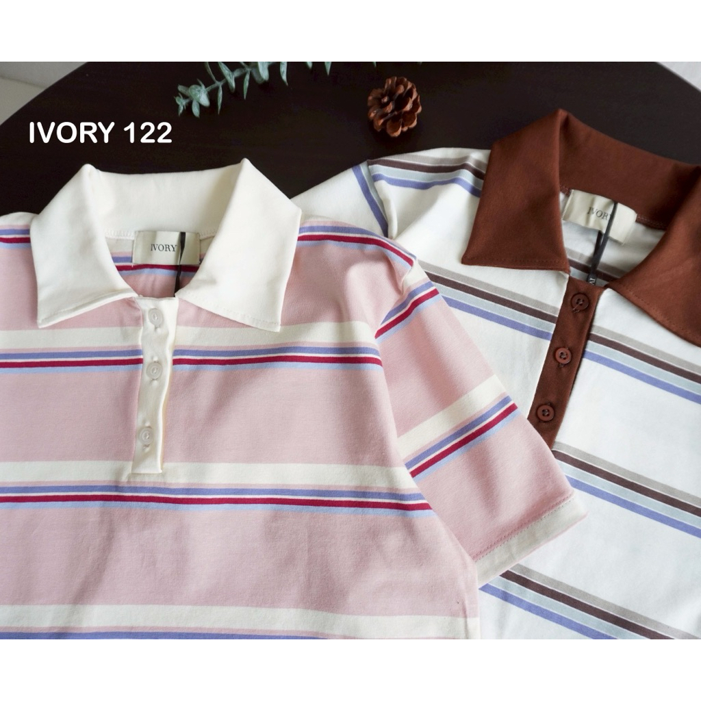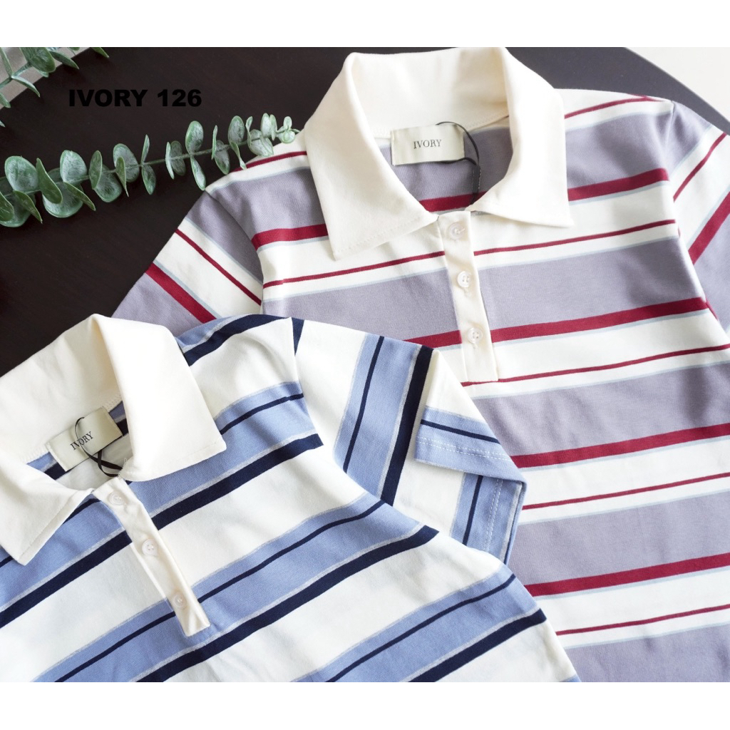 IVORY เสื้อโปโลลายริ้ว (โอเวอร์ไซส์)