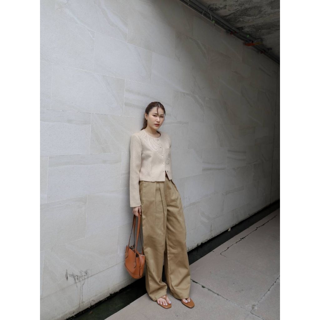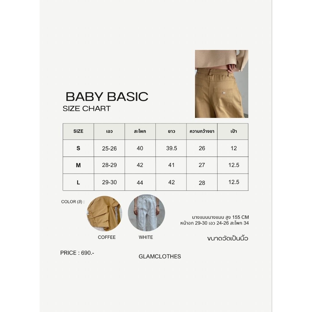 Glamclothes Baby basic trousers กางเกงขากระบอกใหญ่เอวสูง ทรงสวยไม่รัดต้นขา จับจีบ