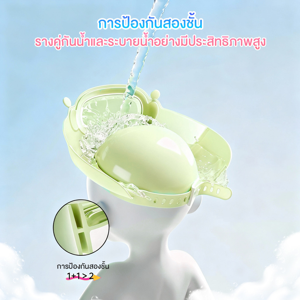 (กันน้ำ,ฟองเข้าตา)kasimi หมวกอาบน้ำสระผมเด็ก ปรับได้ ซิลิโคนกันน้ํา ปกป้องดวงตาและหูของคุณ