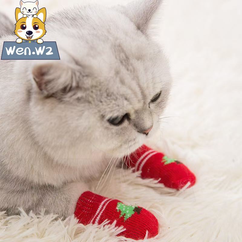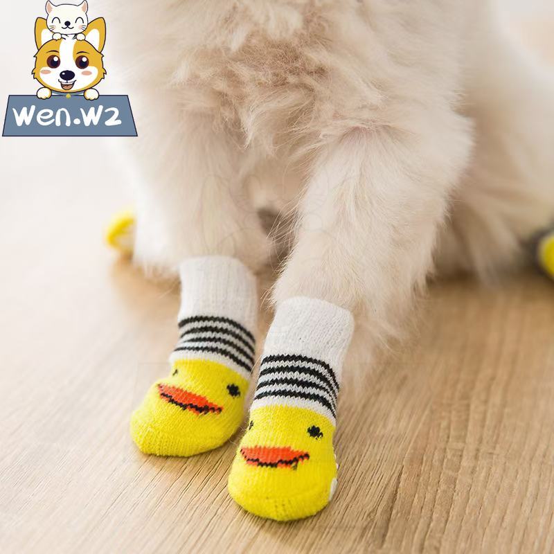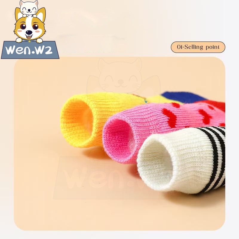 wen.W2 ชุดถุงเท้าสุนัขกันลื่น สำหรับลูกหมา ถุงเท้าคล้องเท้าสุนัข ของใช้สัตว์เลี้ยง