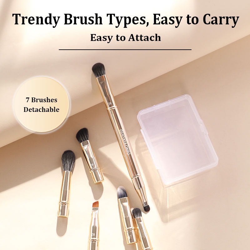 GUOXIAONIU ชุดแปรงแต่งหน้าแบบถอดได้ 7หัวเปลี่ยนแบบพกพาสําหรับการเดินทางการประยุกต์ใช้อายแชโดว์และคอนซีลเลอร์