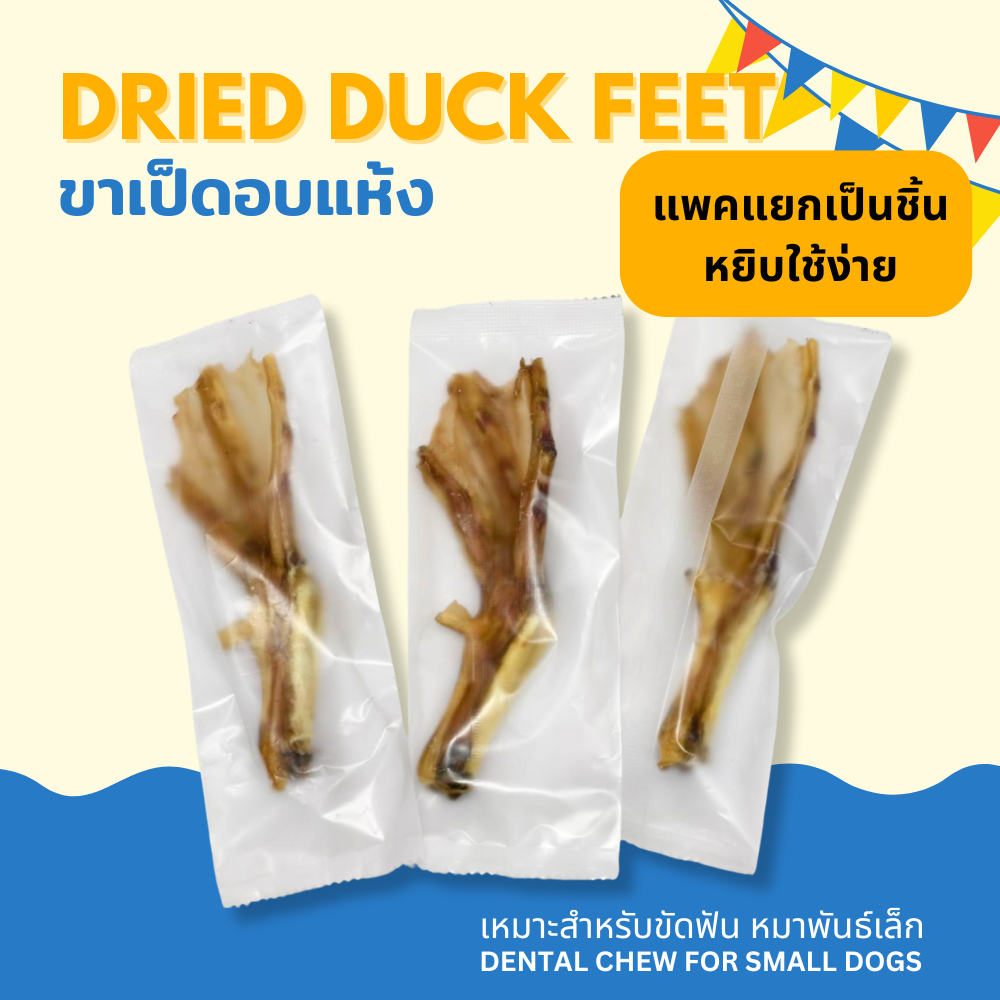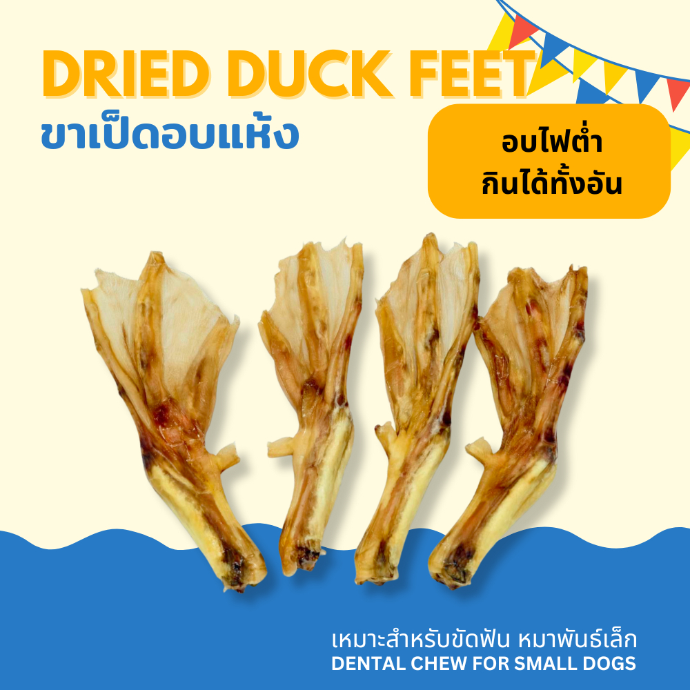 ขาเป็ดอบแห้ง ขนมหมา สำหรับหมาพันธุ์เล็ก ขัดฟันเ DRIED DUCK FEET NATURAL DOG TREATS FOR SMALL BREEDS