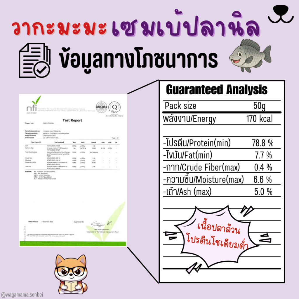 [ขนมสุนัข ขนมแมว] New Wagamama Tilapia Senbei เซมเบ้ ปลานิล 100% หอม กรอบ ได้ทั้งน้องหมาน้องแมว
