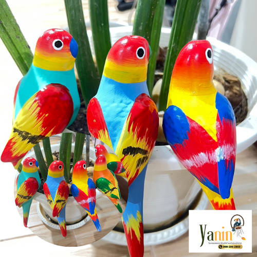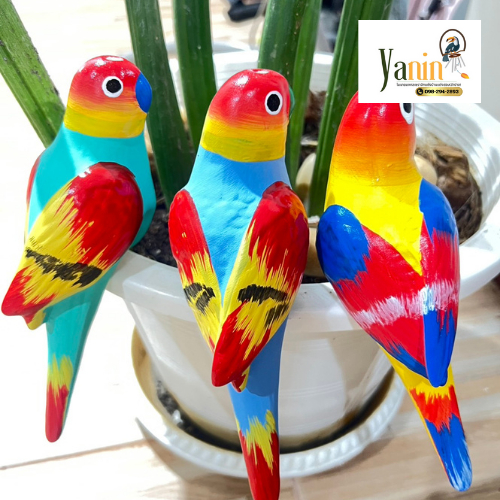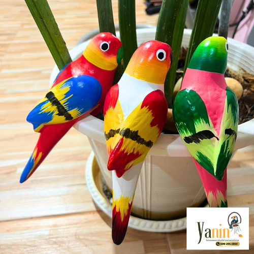 นกเซรามิกเกาะกระถางสีรุ้ง