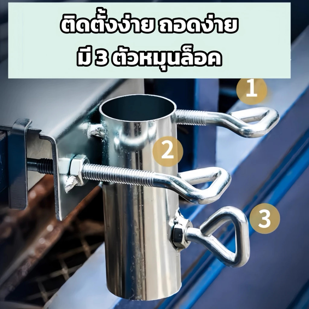 PAขาตั้งร่ม ตัวล็อคร่มยึดราว ที่ยึดร่ม สำหรับยึดที่บังแดดบังฝน ที่วางร่มกันแดด ขายึดร่ม สำหรับรถเข็น สำหรับแม่ค้า สำหรับ