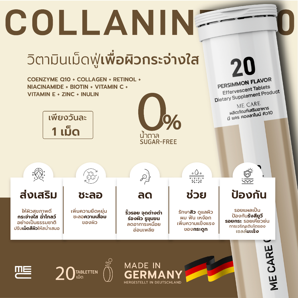 ME CARE Collanine Q10 วิตามินเม็ดฟู่ 3 หลอด กลิ่นลูกพลับ