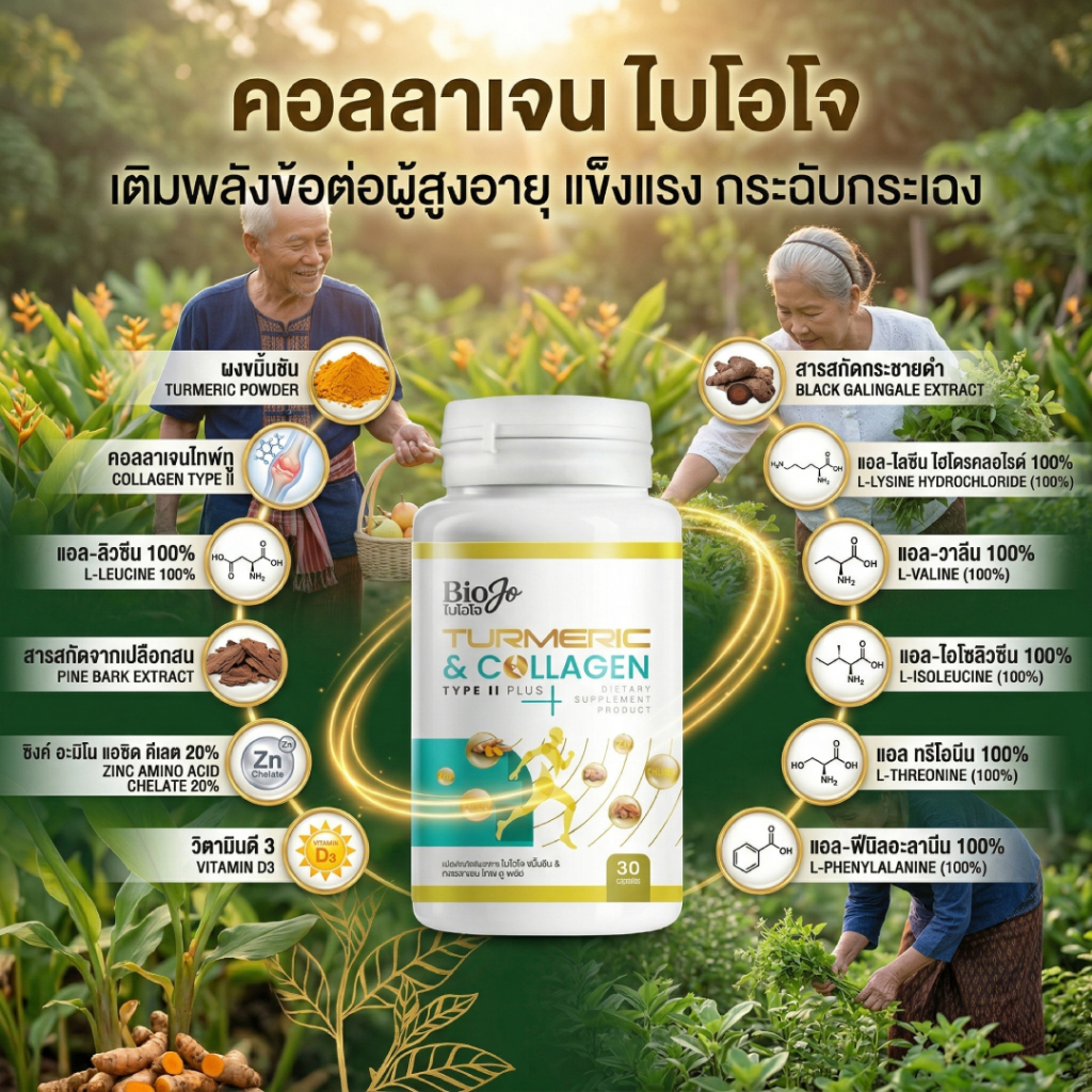 Biojo collagen Bon active ขมิ้นชัน & คอลลาเจน ไทพ์ ทู พลัส ( 1 แถม 1 ) บำรุงข้อกระดูก ลดอาการอักเสบ