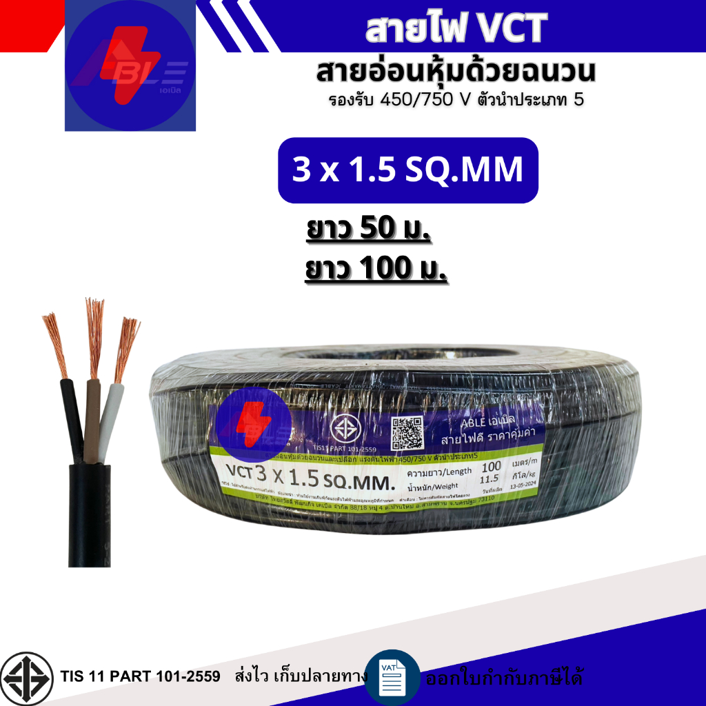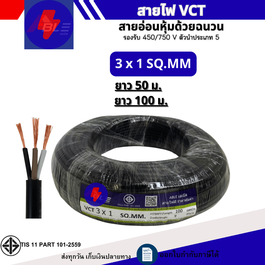 สายไฟ VCT 3x1 / 3x1.5 ยาว 50 เมตร 100 เมตร สายไฟอ่อนหุ้มฉนวน สินค้ามาตรฐาน