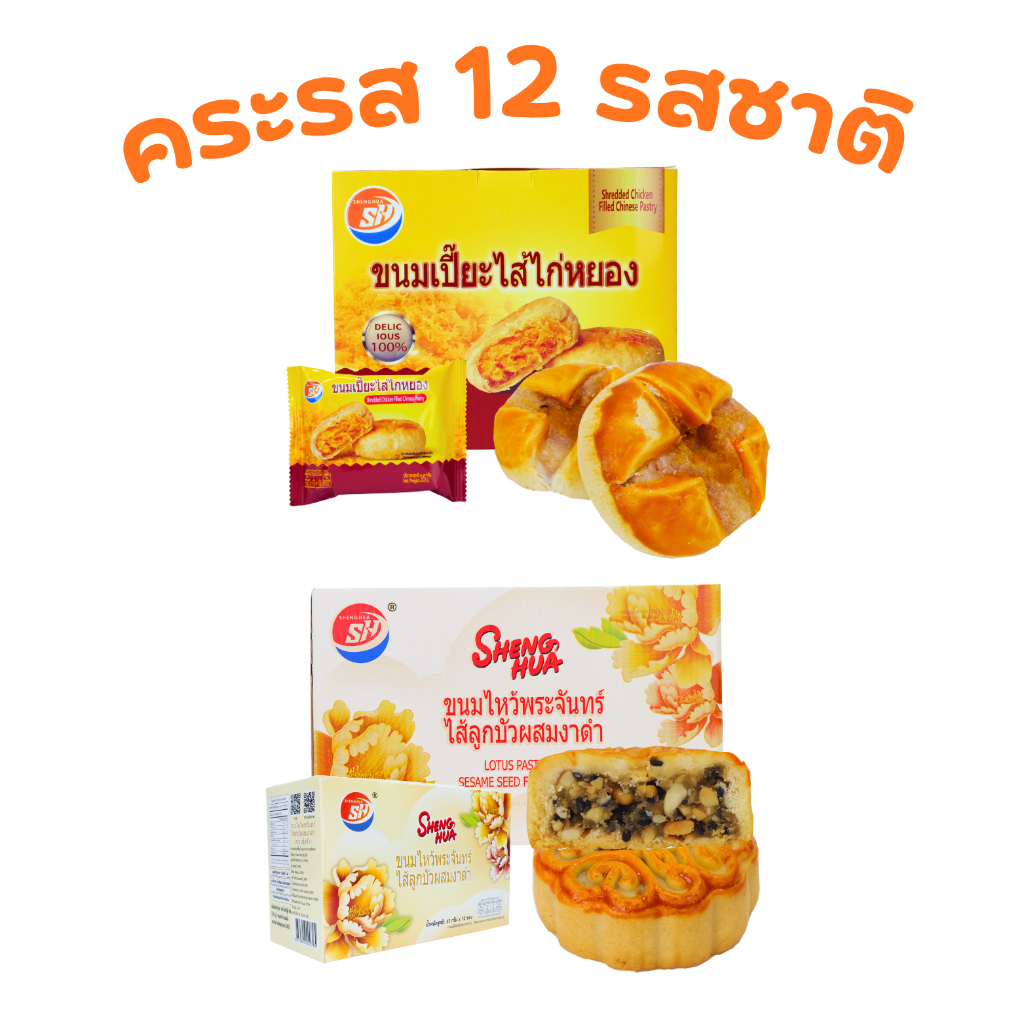 Shenghua เซ็ตรวมเบเกอรี่พรีเมียม เปี๊ยะ + เค้กสอดไส้ + ขนมไหว้พระจันทร์ 1 ลัง 12 กล่อง รวม 144 ชิ้น