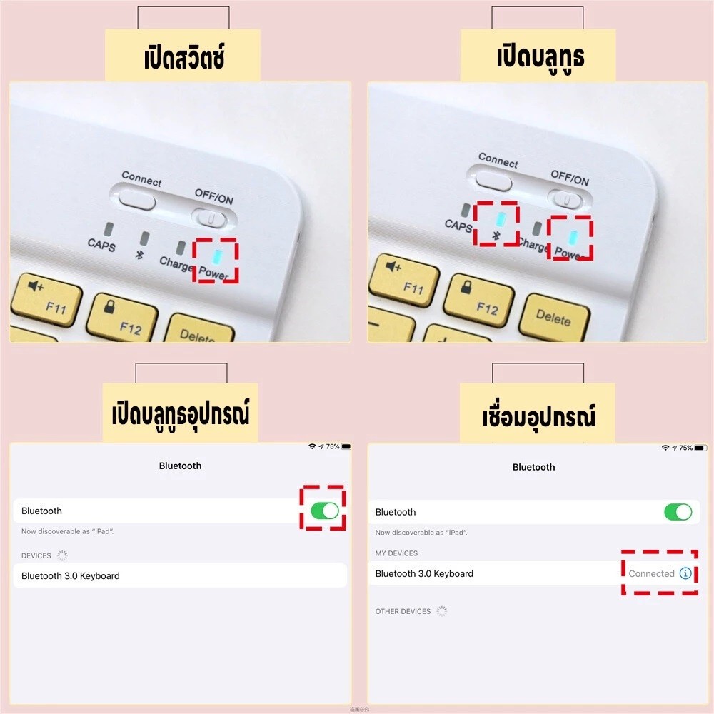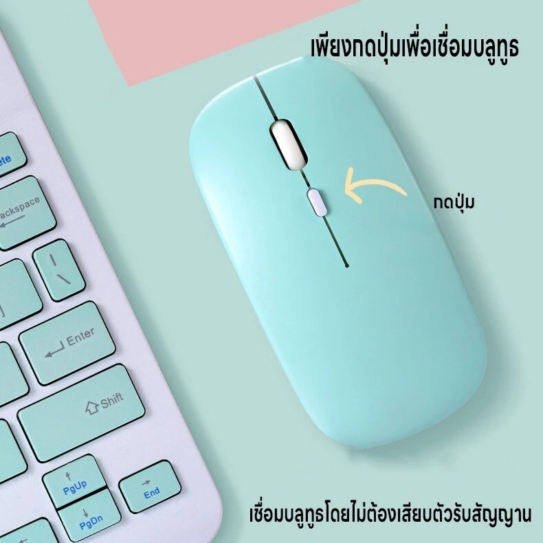 แป้นพิมพ์เม้าส์บลูทูธ แป้นพิมภาษาไทย คีย์บอร์ดBluetooth เมาส์ไร้สาย เชื่อมง่ายใช้สำหรับคอม iPad แท็บเล็ต มือถือ ชาร์จUSB