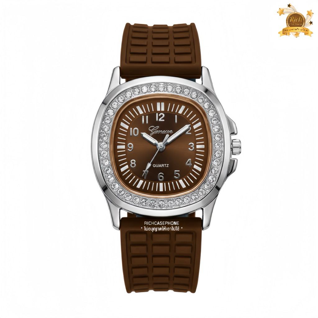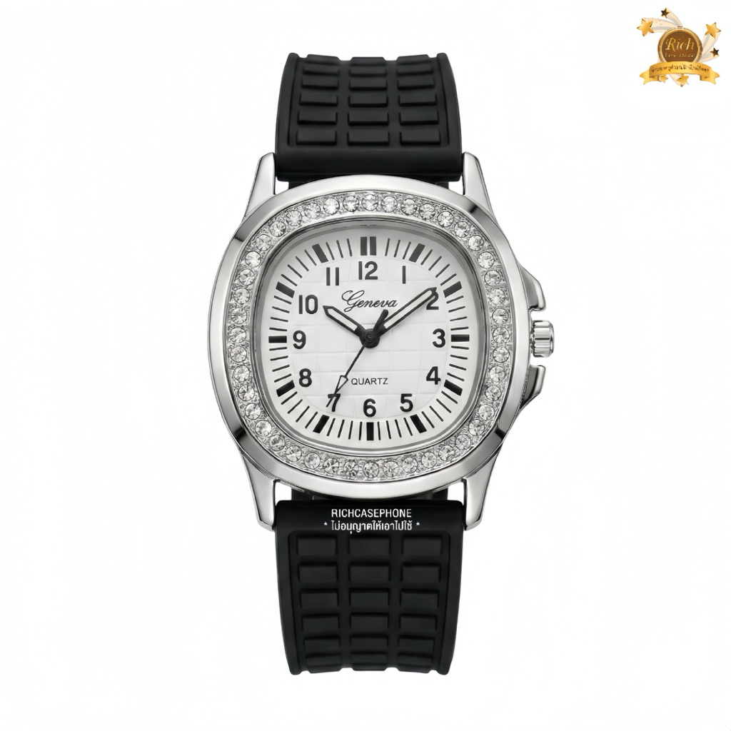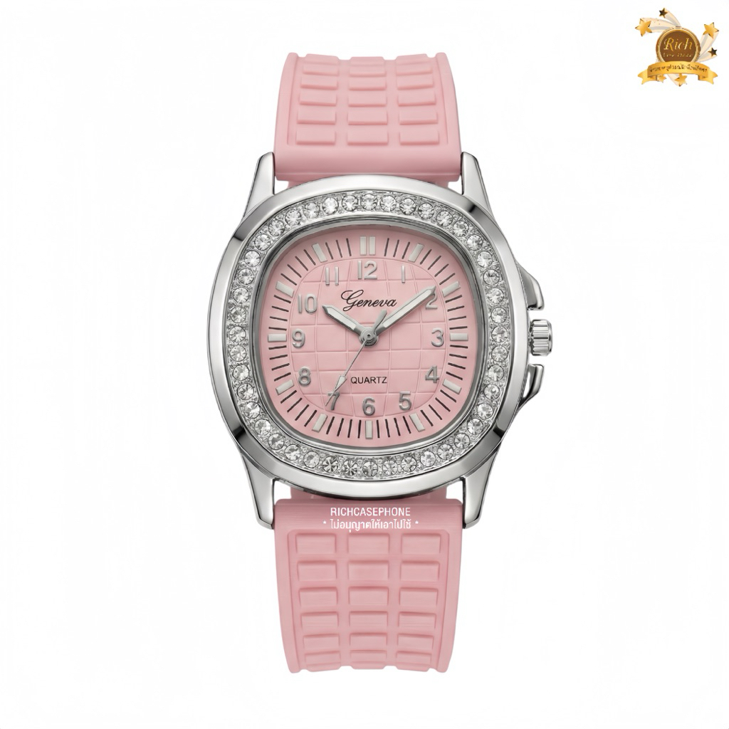 นาฬิกาข้อมือผู้หญิง GENEVA - เจนีวา แท้ รหัส GG116 หน้าปัดล้อมเพชร ตัวเลข 12 หลัก สายซิลิโคน มีหลายสี