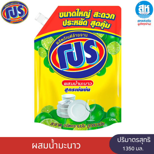 โปร น้ำยาล้างจานสูตรเข้มข้น ผสมน้ำมะนาวและผสมเบอร์รี่ ปริมาณสุทธิ 1350 มล. มี 2 สูตรให้เลือก