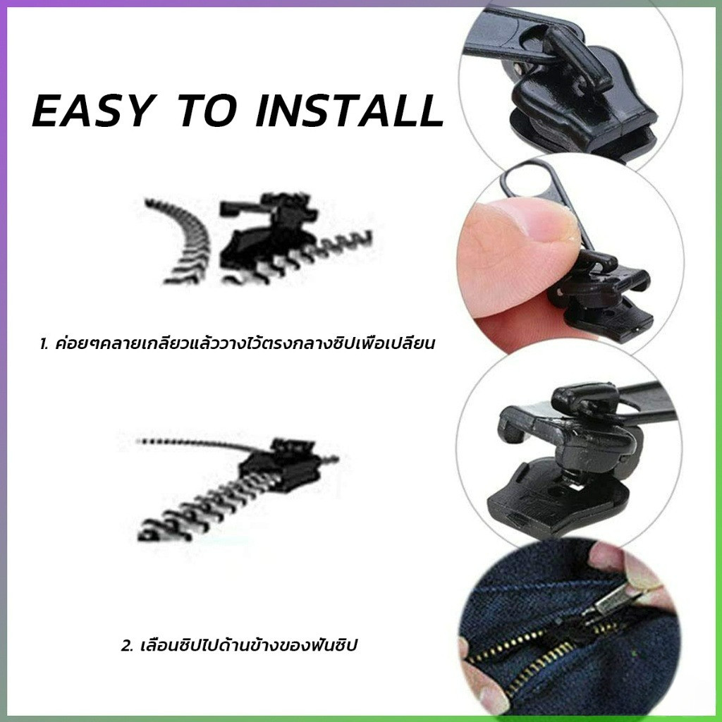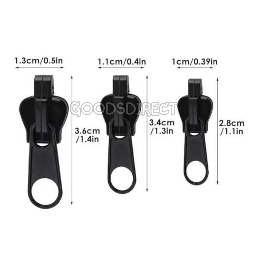 หัวซิป โลหะ หัวซิปสำรอง หัวซิปรูด ถอดออกและประกอบได้ทันที ซ่อมแซมเสื้อผ้า 3 ขนาด 6ชิ้น/ชุด