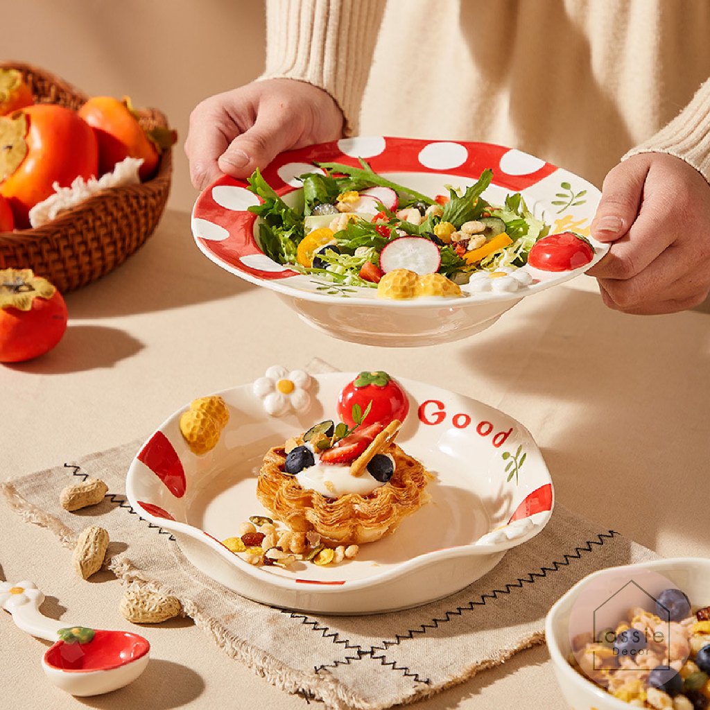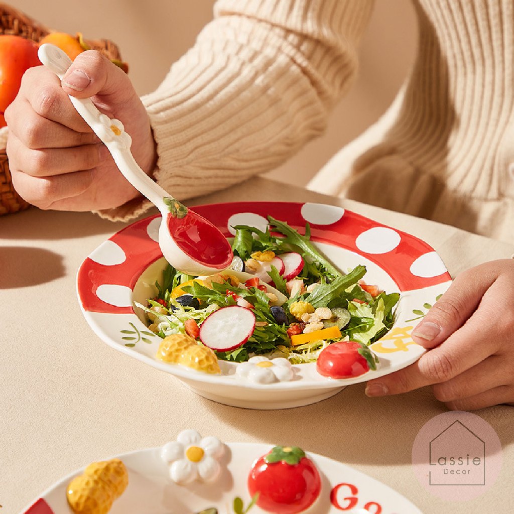 🌟เซตจานชาม Tomato & Peanut จานเซรามิก เข้าไมโครเวฟได้ Food Grade สำหรับสายแต่งบ้าน เพิ่มสีสันให้โต๊ะอาหาร Lassie Decor