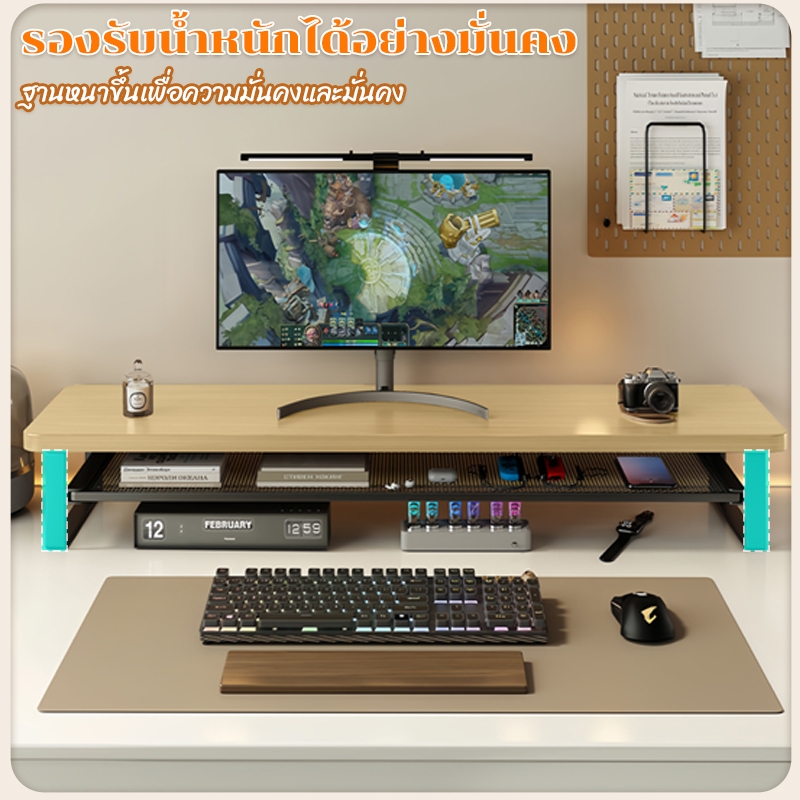 ที่วางจอคอม ชั้นวางจอคอม จัดระเบียบเดสก์ท็อป 2 ชั้น 50/70/100ซม เหล็กผสมไม้