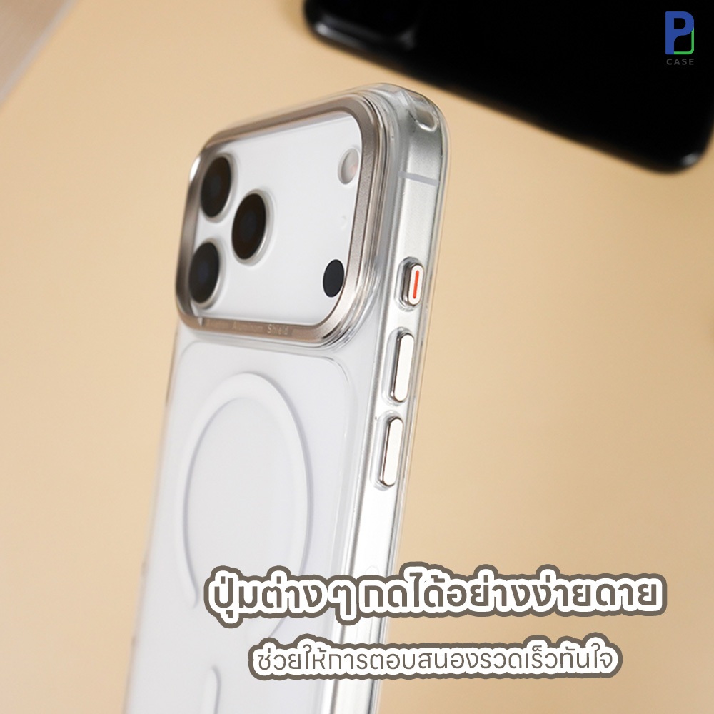 Case เคสไอโฟน เคสใส ขอบกล้องอลูมิเนียม ปิดปุ่มCamera สำหรับ iP 17ProMax / 17Pro / 17