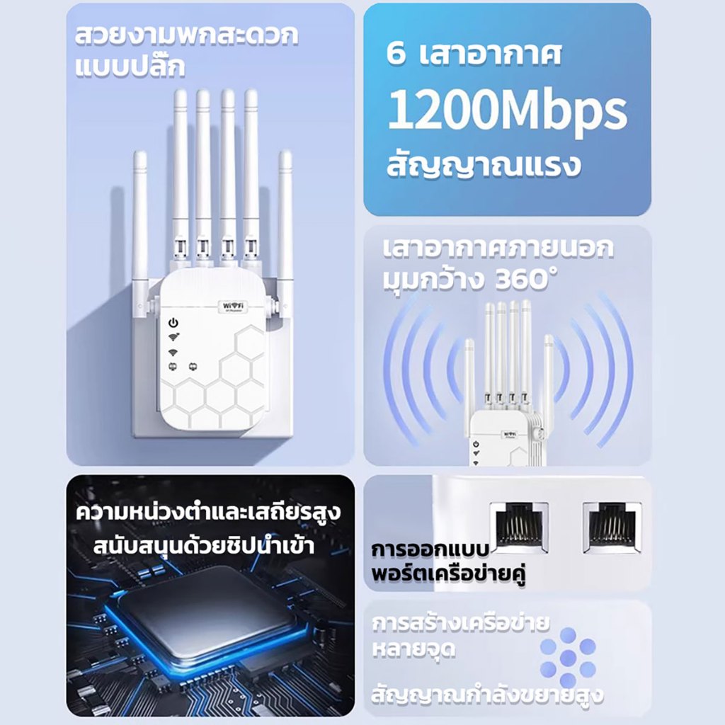 ⚡️ส่งฟรีทั่วไทย⚡️(อุปกรณ์ขยายสัญญาณ) TP-LINK Repeater ตัวขยายสัญญาณ (Wi-Fi Range Extender) ความเร็วสูง1200M ไม่รค้าง