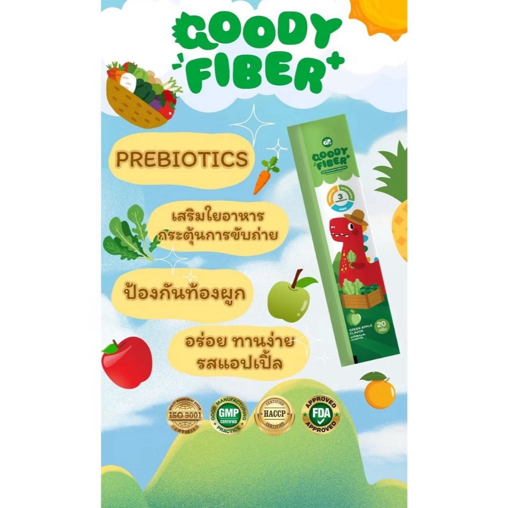 1แถม1!! GOODY FIBER กู๊ดดี้ไฟเบอร์ วิตามินเจลลี่(รสแอปเปิ้ล)สำหรับเด็ก PREBIOTIC