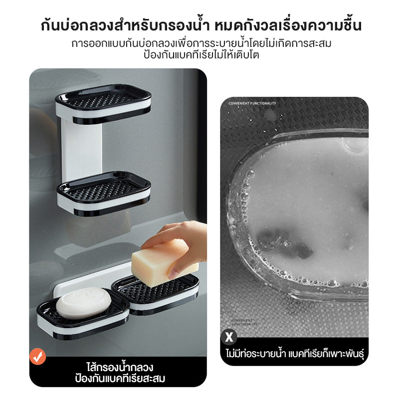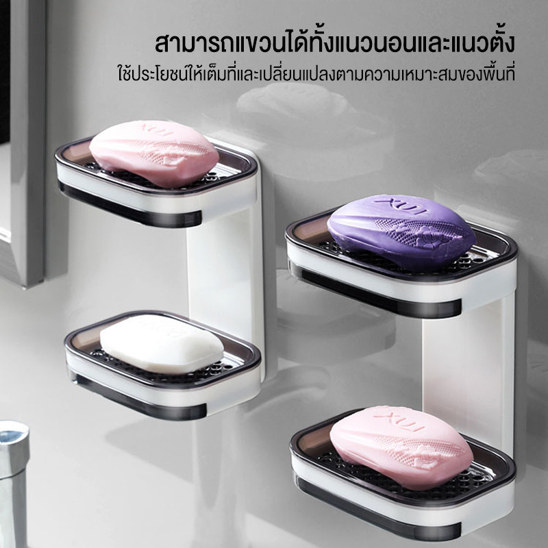 กล่องสบู่, ชั้นวางสบู่, กล่องสบู่ห้องน้ํา, ไม่มีการเจาะ, ถ้วยดูด, ติดผนัง, ชั้นคู่, ระบาย, ภายในประเทศ