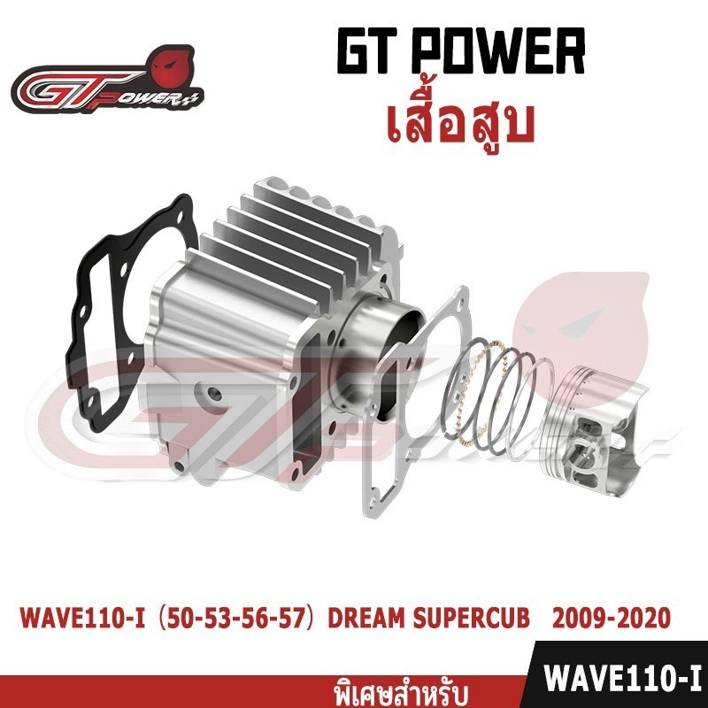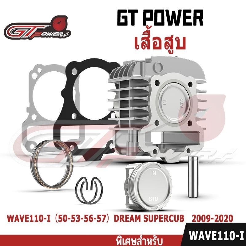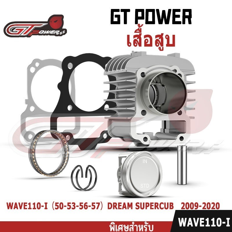 เสื้อสูบ WAVE110i DREAM SUPERCUB 2009-2020 ดรีม เวฟ เวฟ110-I ลูก 50 53 56 57mm ลูกสูบ + แหวนสูบ+ปะเก็น พร้อมประกอบ แข็ง