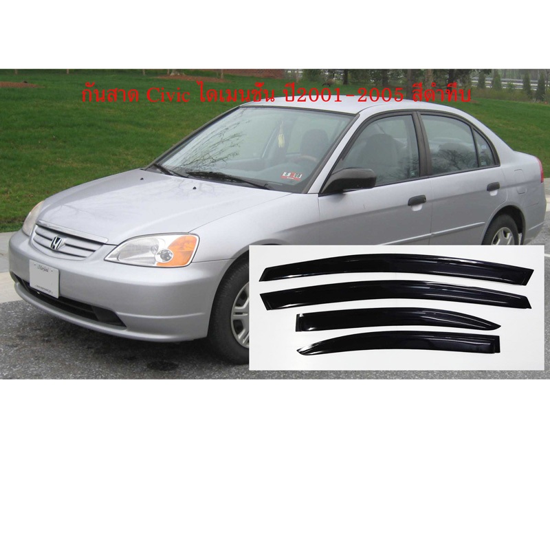 คิ้วกันสาดประตู HONDA Civic 2001-2011 คิ้วกันสาด สีดำ 4ประตู การระบายอากาศ ม่านบังแดด กันฝน กันสาด ใส่ร่วมกันได