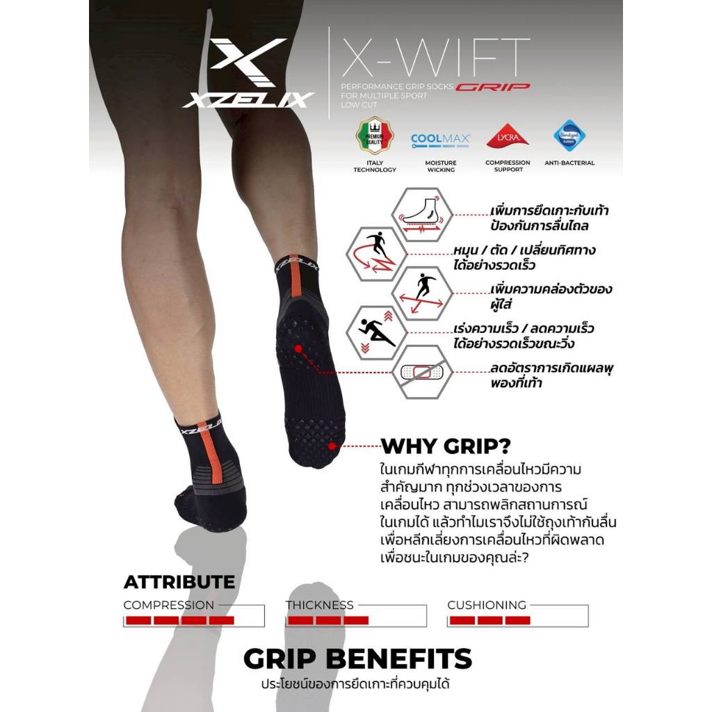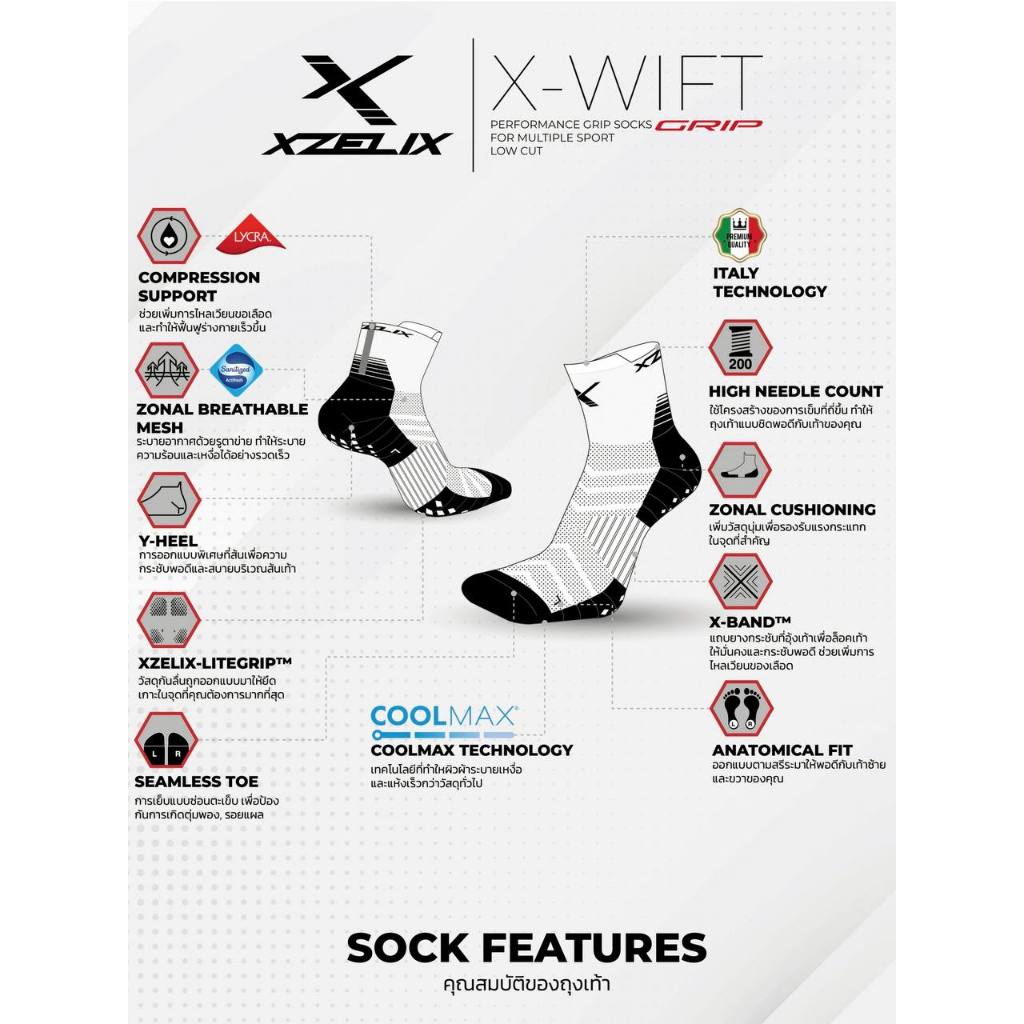 ถุงเท้ากีฬากันลื่น XZELIX X-Wift GRIP Low Cut Sock
