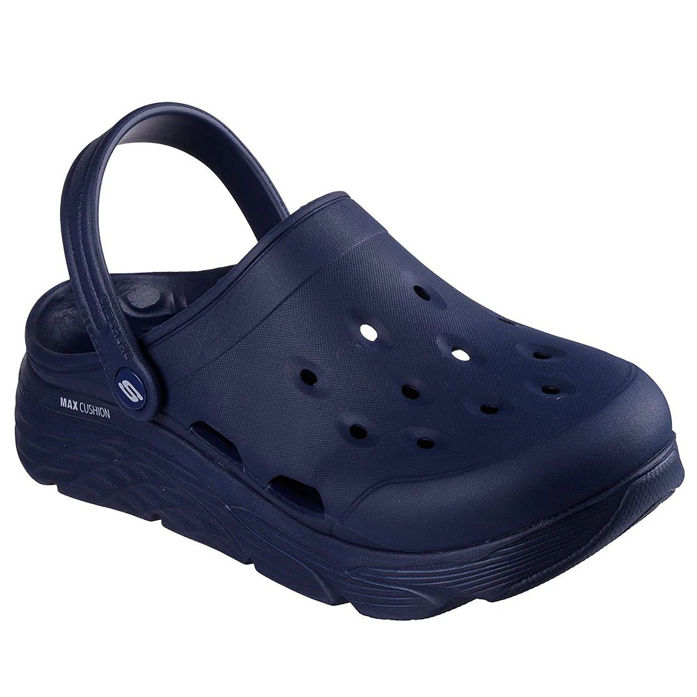 SKECHERS Men's Foamies Max Cushioning - Inner Strength (Navy) รองเท้าแตะรัดส้นผู้ชาย เสริมสูง 5 ซม. สเก็ตเชอร์