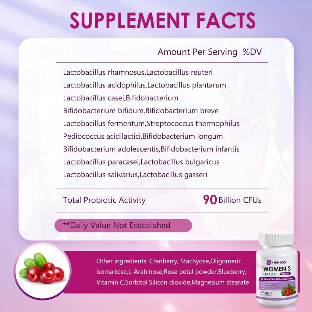 OMOGS Probiotic for Women - ลดอาการท้องอืด, ระบบย่อยอาหาร, เสริมภูมิคุ้มกัน - 90 billion cfu 90 pieces