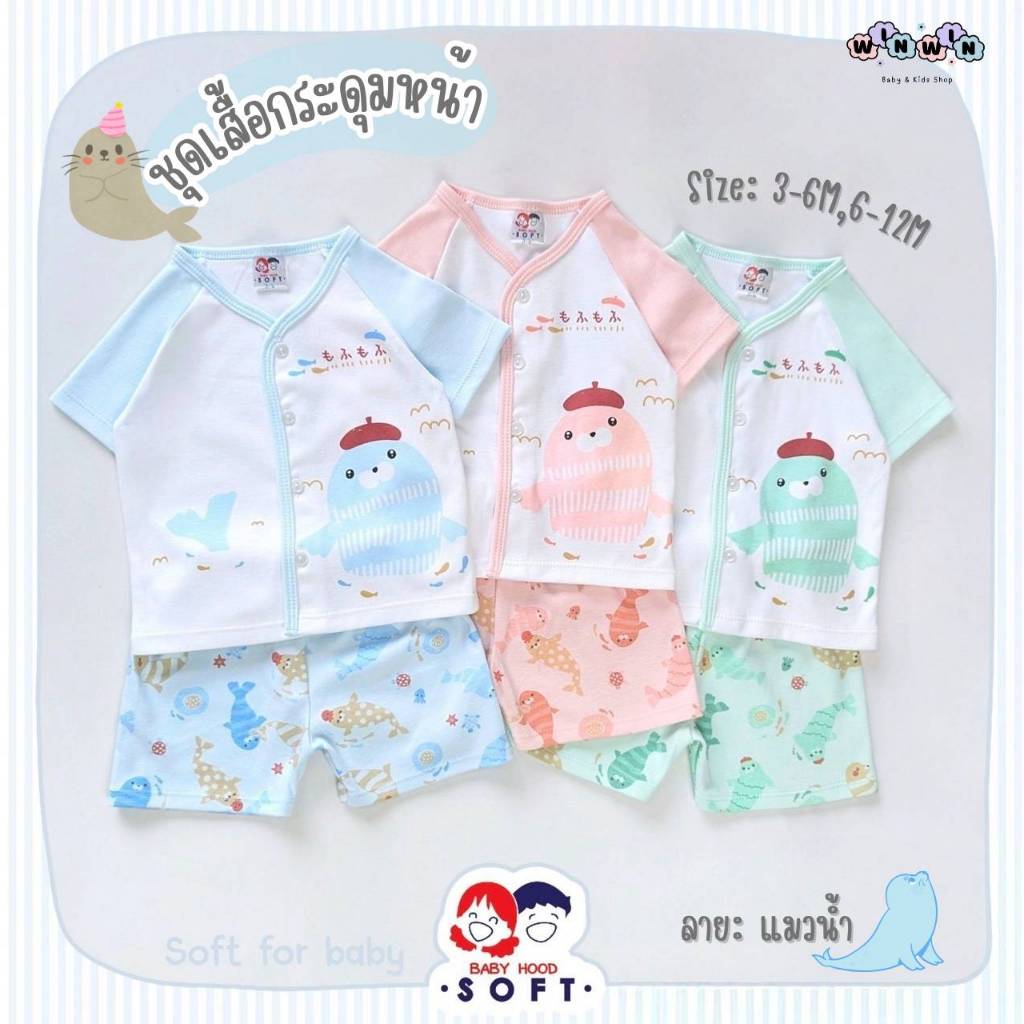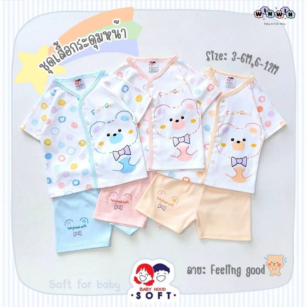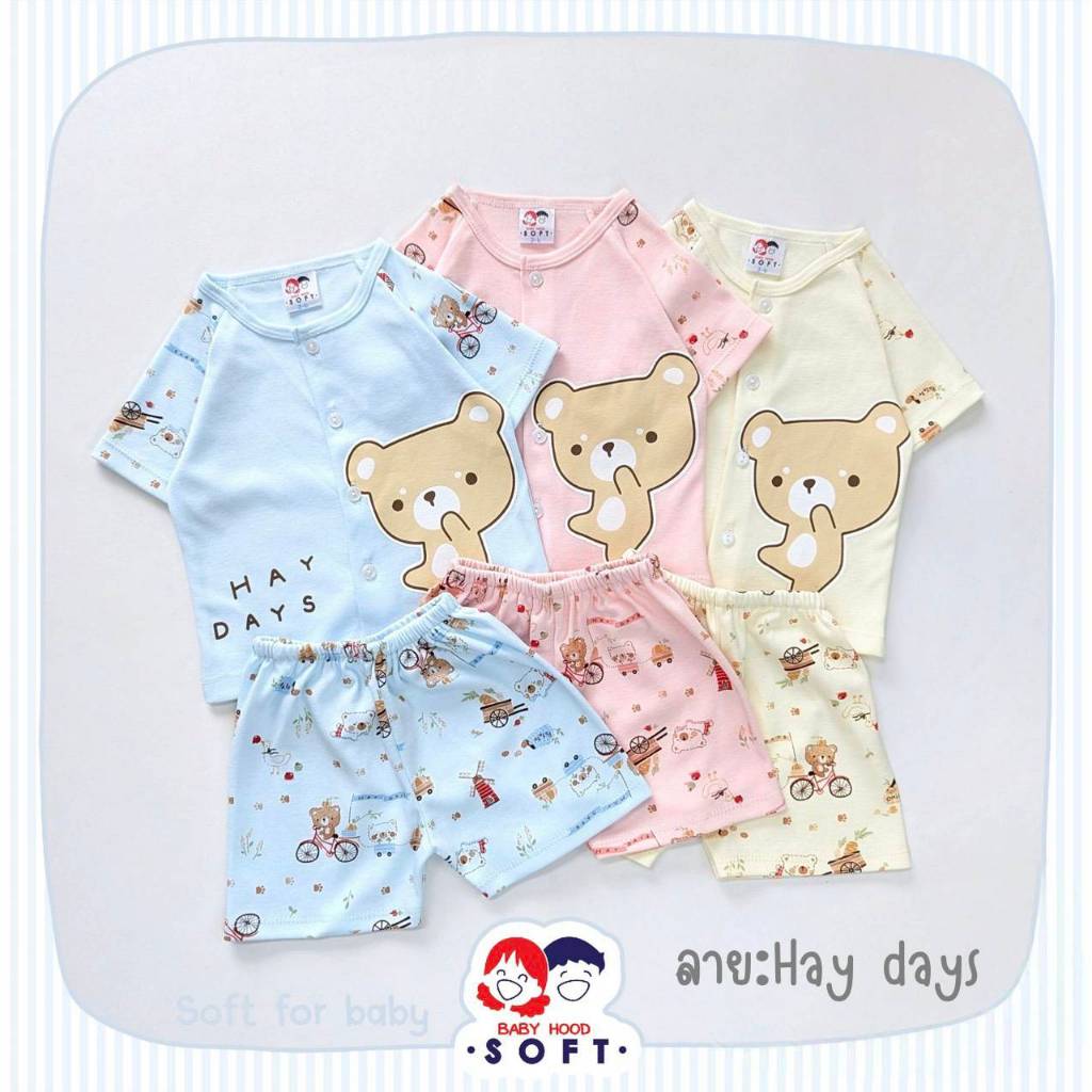 Baby hood Soft ชุดเซ็ต เสื้้อยืดแขนสั้น กระดุมหน้า กางเกงขาสั้น Size: 3-6M 6-12M