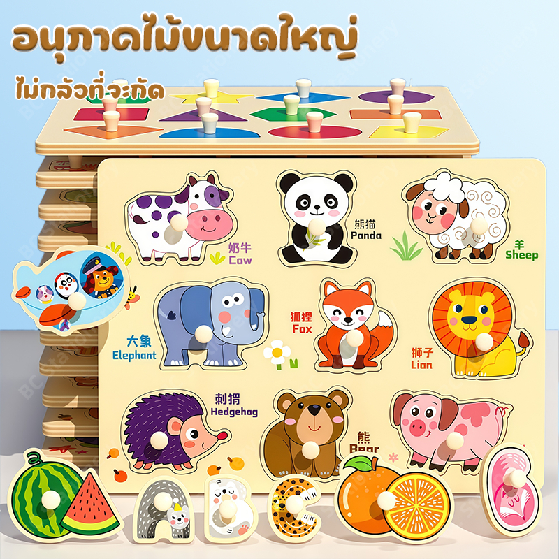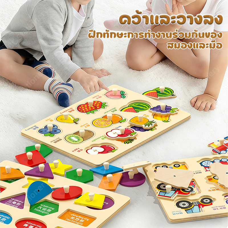 จิ๊กซอว์เด็ก ของเล่นจุกไม้ เสริมพัฒนาการ ตัวต่อชิ้นเดียว สำหรับเด็กเล็ก 10แบบ