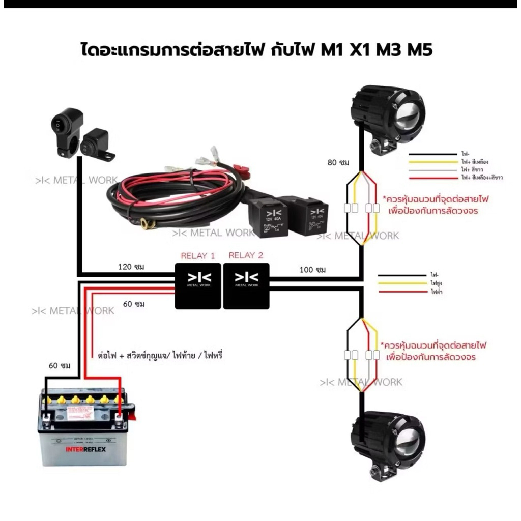 ไฟสปอร์ตไลท์มอเตอร์ไซค์ T1 Plus 50W ของแท้ แพค 2 ชิ้น ชุดสายไฟรีเลย์คู่ สวิทช์ฟิวส์ จำนวน 1 ชุด