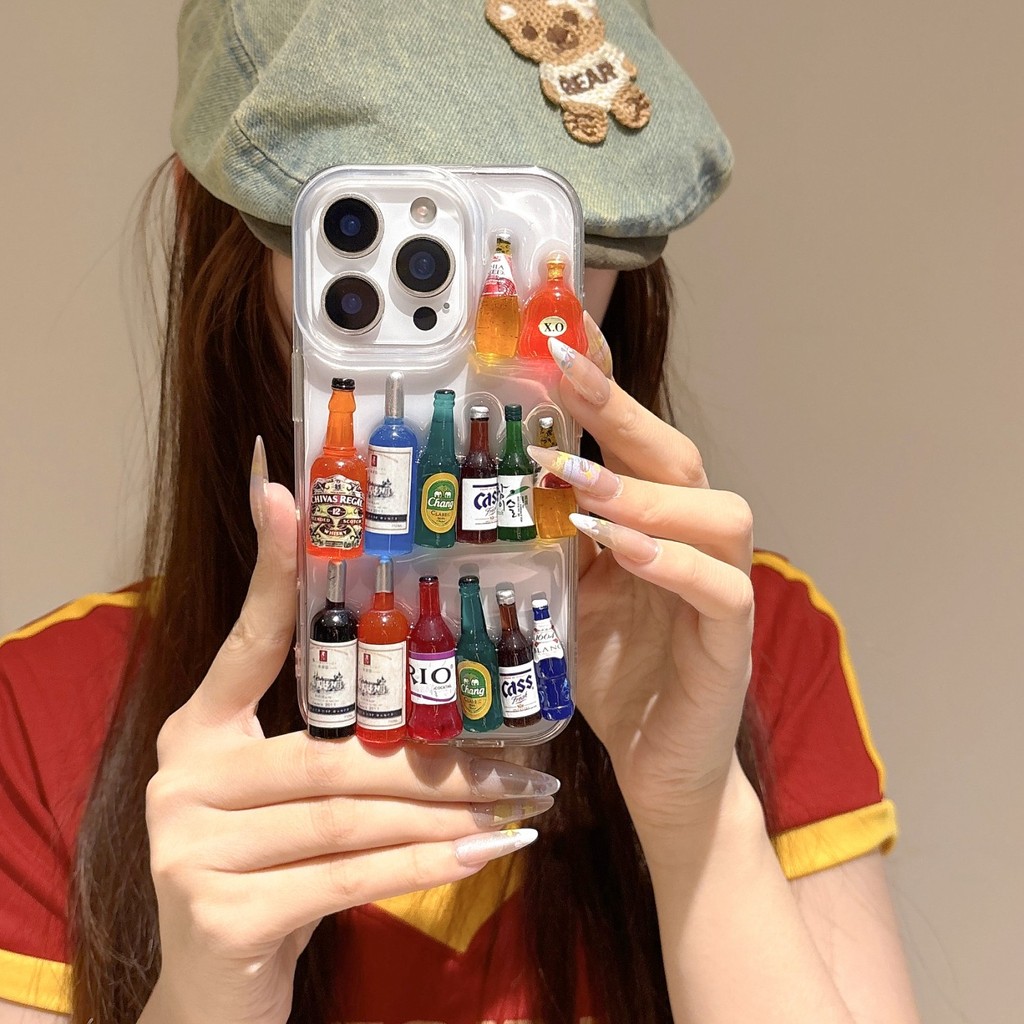 3D Whisky ขวดไวน์สีแดงโปร่งใสExpoyสําหรับiPhone 17Promax 16Promax 16Pro 15Promax 15Plus 11 12 13 14 Pro Maxกันกระแทกฝาครอบมือถือ