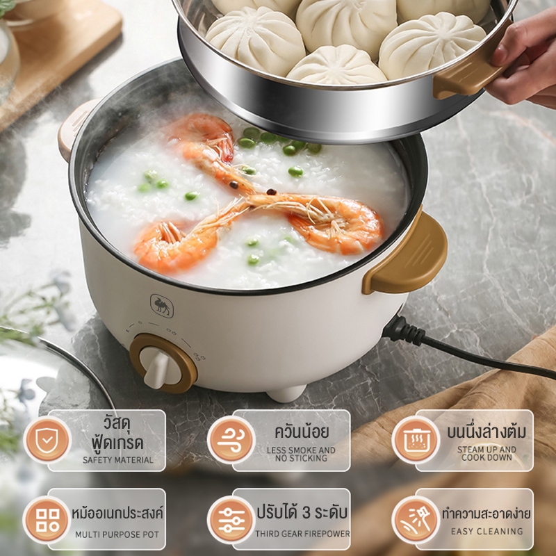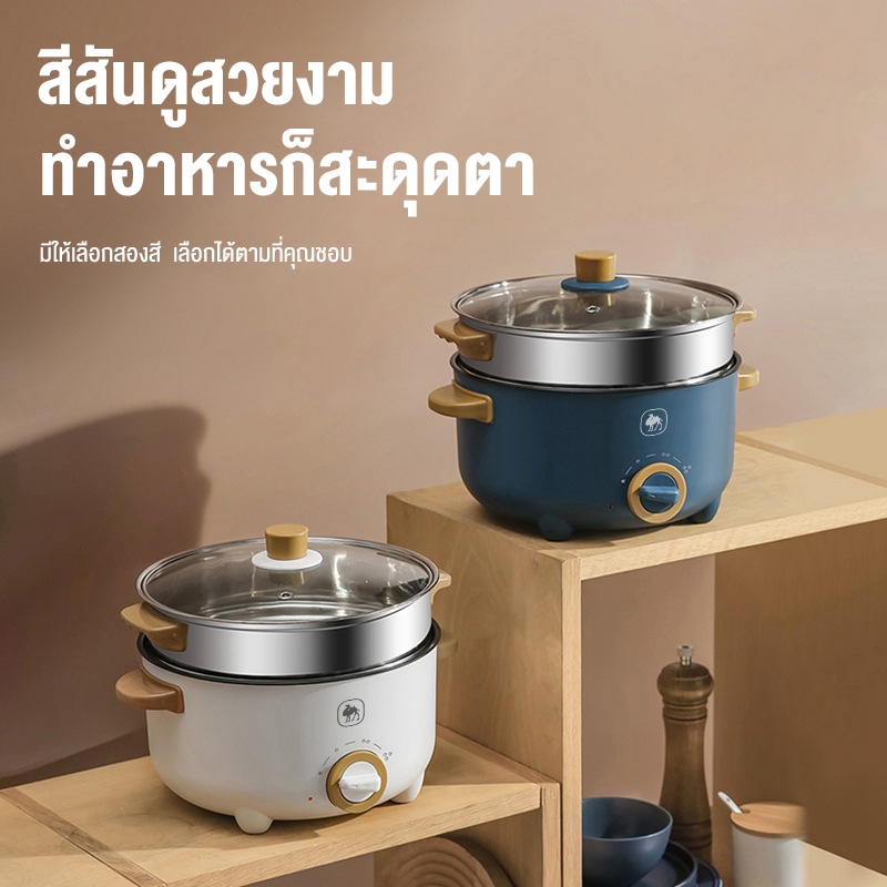 CAMEL หม้อไฟฟ้า หม้อไฟฟ้ามินิ หม้อไฟฟ้าอเนกประสงค์ 1000W ไม่ติดกระทะ ตัดไฟอัตโนมัติ