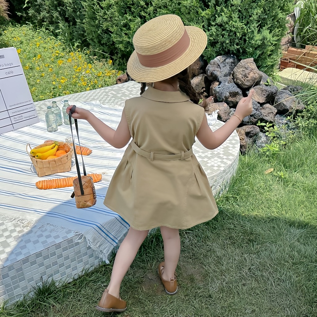 PRINCESS KESLIเวอร์ชั่นเกาหลีเสื้อผ้าเด็กฤดูร้อนสไตล์ใหม่สาวชุดแฟชั่นทารกความรู้สึกการออกแบบกระโปรงหลวมเสื้อกั๊กกระโปรง