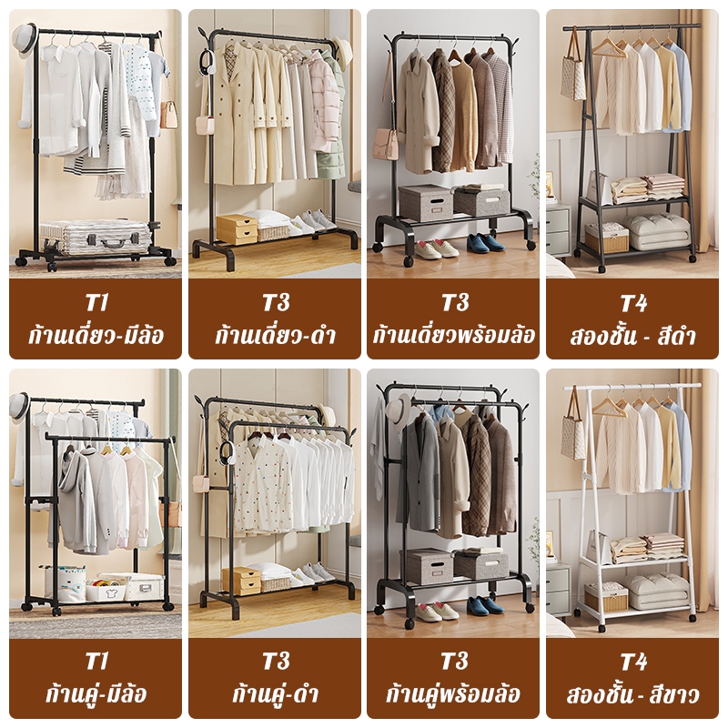 ราวตากผ้า ราวแขวนเสื้อผ้าบาร์คู่ [เสาเเขวนหมวก+ ] รองรับน้ำหนัก 50kg คุณภาพดี ใช้ได้กับครอบครัวใหญ่ จัดส่งภายใน 24 ชั่วโ