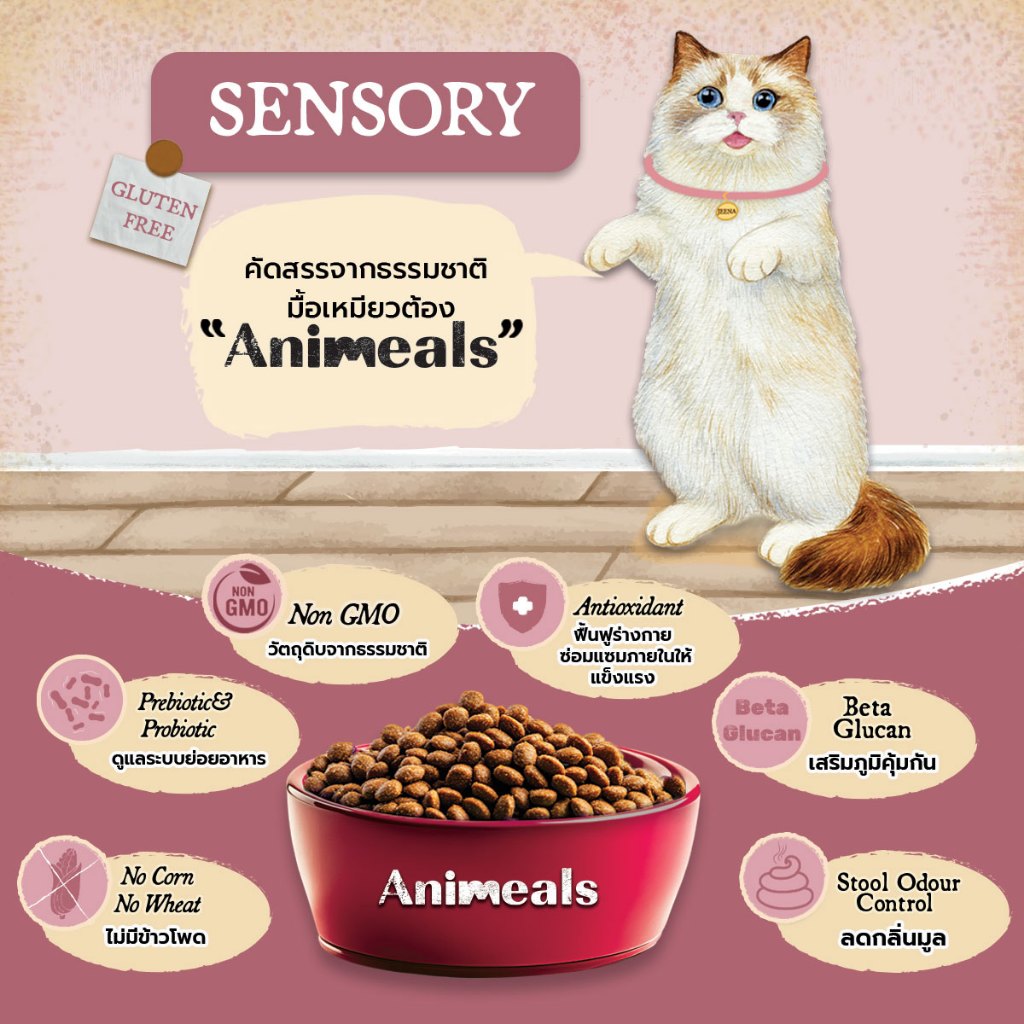 Animeals Sensory 1.2kg. อาหารแมว สูตรขนสวย ตัวแน่น ให้ขนฟู มีน้ำหนัก แซลมอนและทูน่า กลูเตนฟรี