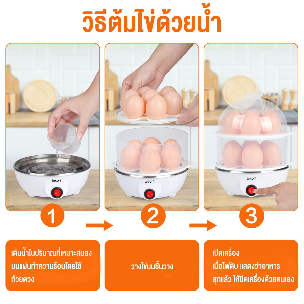 LECON เครื่องต้มไข่ หม้อต้มไข่ เครื่องนึ่งไข่อเนกประสงค์ ต้ม 7-14ฟอง ปอกง่าย ร้อนเร็ว นึ่งผัก