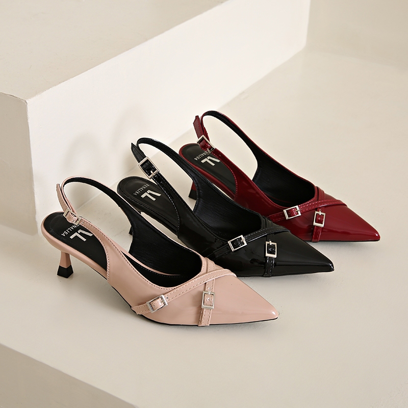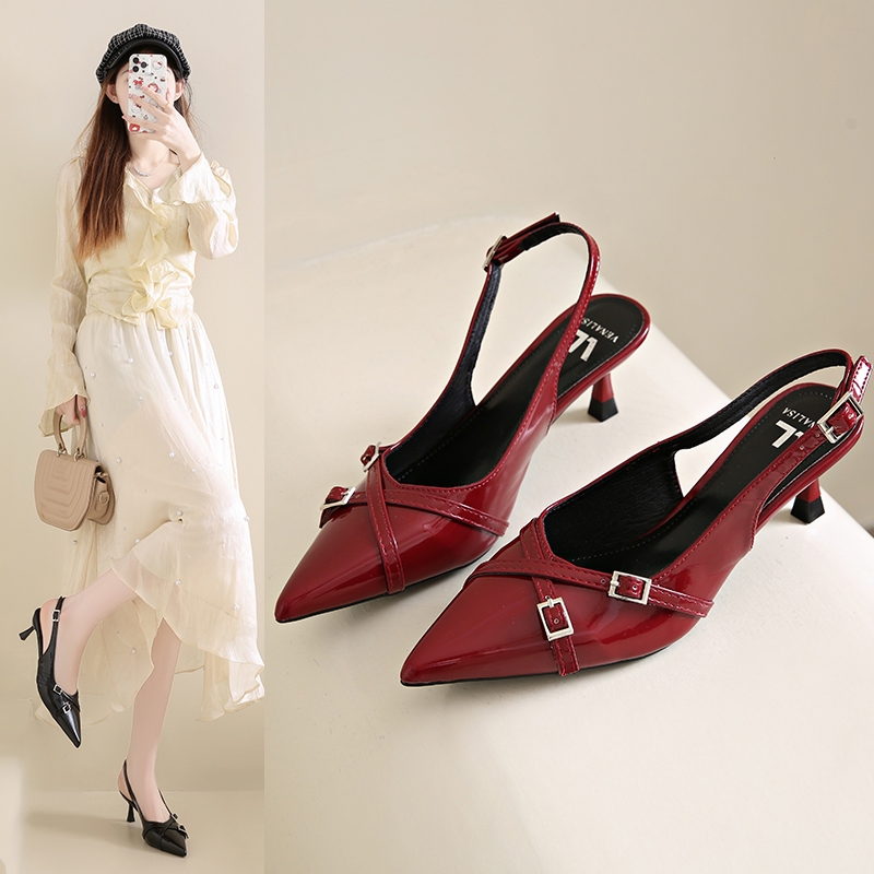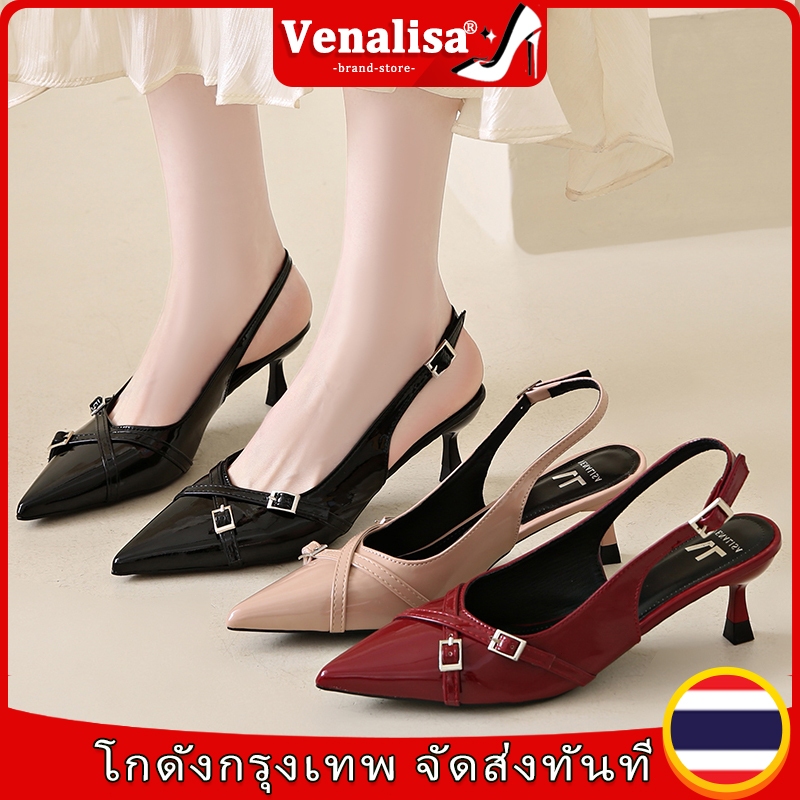 Venalisa รองเท้าแตะส้นสูงผู้หญิง หนังแท้ รองเท้าส้นเข็มหัวแหลม 3 นิ้ว ความสง่างามแบบย้อนยุค