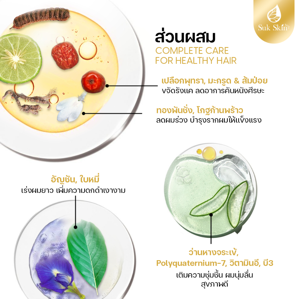 Suk Skin Herbs แชมพูสมุนไพร สุขสกินเฮิร์บซ์ ลดผมขาดหลุดร่วง หนังศรีษะแข็งแรง แบบขวดฝาปั้ม 150ml.