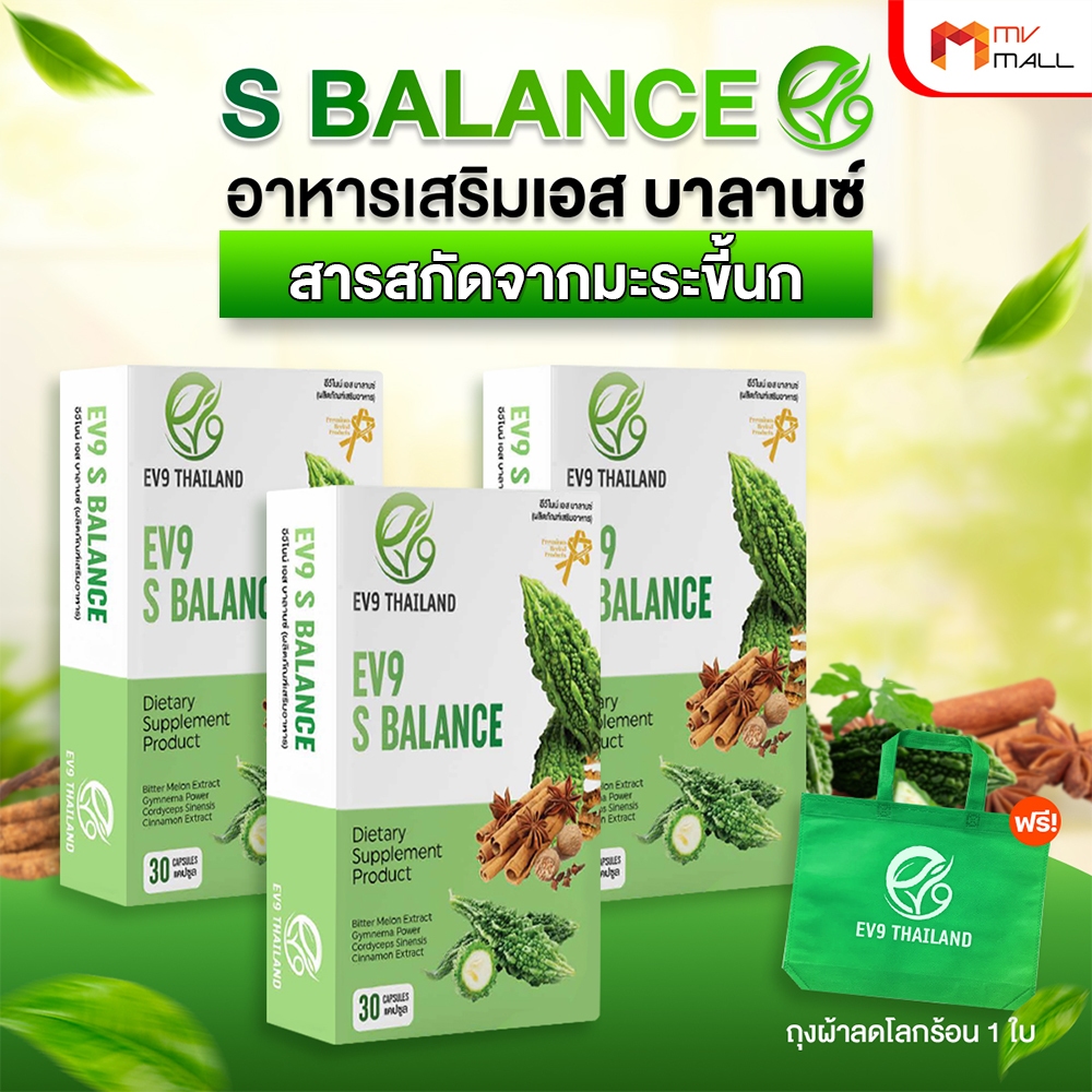 [ 3 กล่อง ]EV9 S Balance อีวีไนน์ สมุนไพรควบคุมน้ำตาลในโลหิต แถมฟรี ถุงลดโลกร้อน จำนวน 1 ใบ พร้อมส่ง