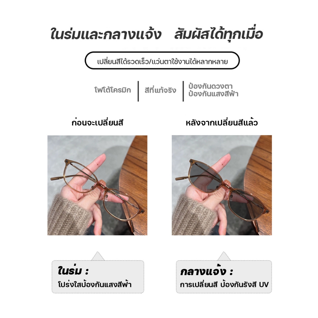 แว่นตาสายตาสั้น แว่นสายตายาว เลนส์ออโต้ UV400 เปลี่ยนสีโดยอัตโนมัติ แว่นตากรองแสง ภายใต้ดวงอาทิตย์ สไตล์วงรีย้อนยุค