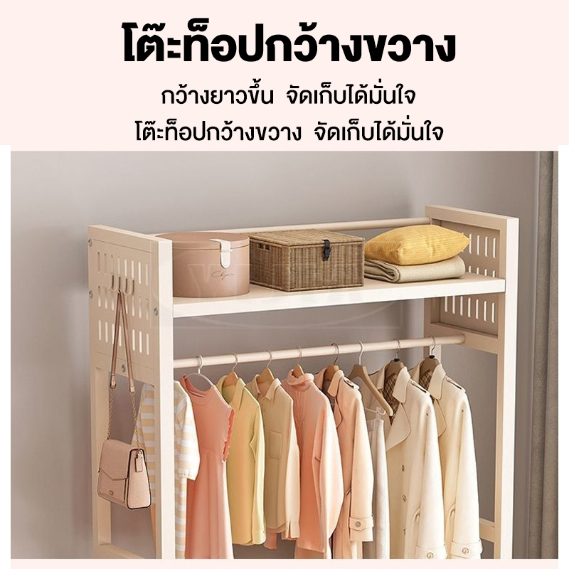 YIJIAราวแขวนผ้า ตู้เก็บของ ตู้เก็บเสื้อผ้าที่มีราวแขวนเสื้อผ้า ประตูตู้กันฝุ่น เหล็กคุณภาพสูง แบบมีล้อเลื่อน