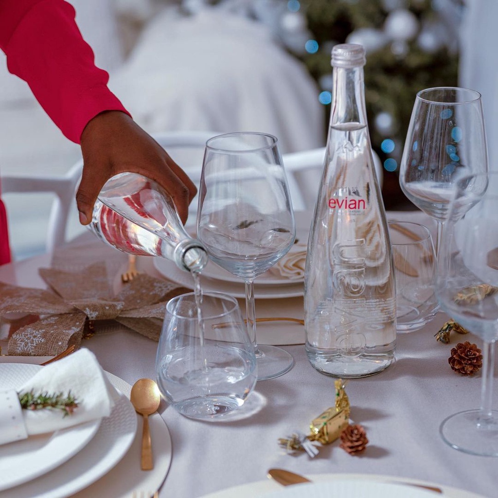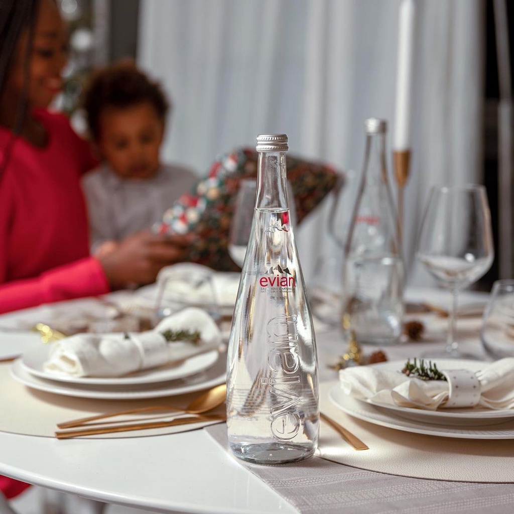 เอเวียง น้ำเเร่ ในขวดแก้ว จากฝรั่งเศส 330 มิลลิตร - Evian Water Glass Bottle imported from France 330ml