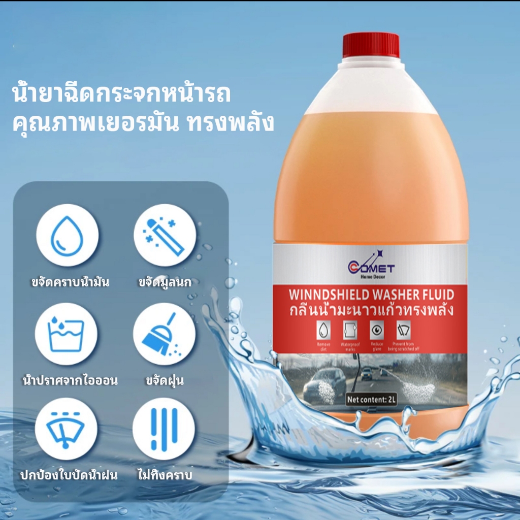 COMET น้ำยาทำความสะอาดกระจก WINDSHIELD WASHER ADDITIVE ล้างคราบน้ำบนกระจก น้ำยาทำความสะอาดกระจกรถยนต์ Car 2000ML