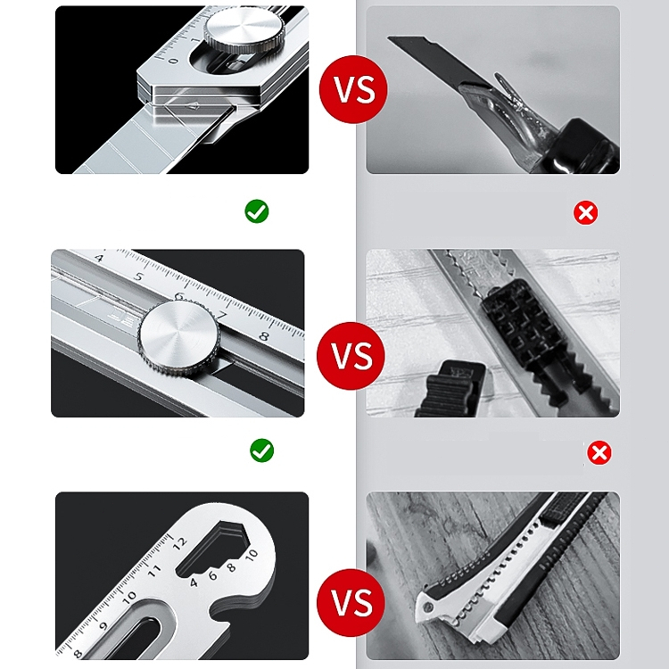 18mm สแตนเลสคัตเตอร์ มีดคัตเตอร์อย่างดีอเนกประสงค์,6 In 1 ARIDOO ใบมีดเหล็กคาร์บอนขวดที่เปิดขวดไม้บรรทัด